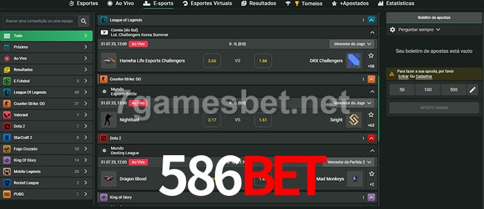 O 586bet oferece uma grande seleção de opções de apostas em e-sports com probabilidades competitivas